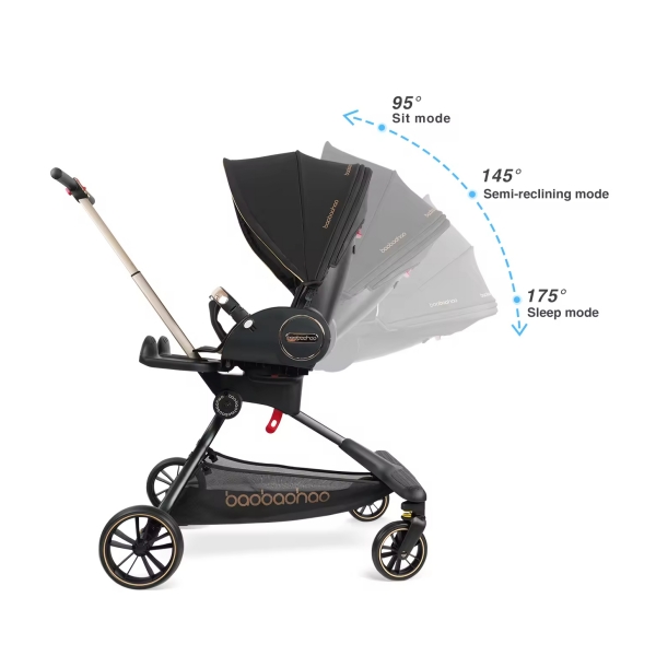 Ergonominen istuinsuunnittelu. Kulma voidaan säätää vapaasti 95 °-175 °, ja kallistussuunnitelma jättää hyvästit puoliksi matalaan uneen suojaamalla vauvan alikehittynyttä selkärankaa, joka on turvallisempaa ja mukavampaa.